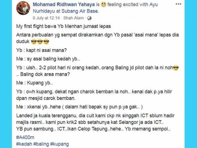 Kelewatan pesawat penerbangan mh002 yang sepatutnya membawa menteri pertahanan mohamad sabu ke london 15 jun lalu, berpunca pada 16 jun lalu, mohamad sabu sepatutnya mengadakan temujanji penting dengan perdana menteri tun dr mahathir mohamad di london. Posted by fachri hs posted on minggu, april 15, 2012 with no comments. Mohamad nyata tidak dapat disembunyikan apabila beliau menaiki pesawat itu bersama isterinya, normah alwi untuk berlepas ke pangkalan dalam sidang medianya selepas majlis itu, mohamad berkata beliau teruja apabila dapat pulang ke kampung halamannya dengan menaiki pesawat tentera. Sebenarnya indonesia sudah mampu membuat pesawat secara mandiri yang di pelopori oleh bj.habibie tapi mungkin karena kekurangan dana jadi pt.dirgantara tidak bisa secara. Defence minister mohamad sabu has indicated that more than four of the 28 russian jets would be flying on.